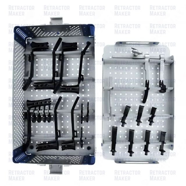 This system features non-slip fenestrated retractors that ensure a secure grip within the muscle and a ball snap closure mechanism for stable and quick assembly. Each component is manufactured from high-grade stainless steel, ensuring durability, corrosion resistance, and long-lasting performance in the operating room.